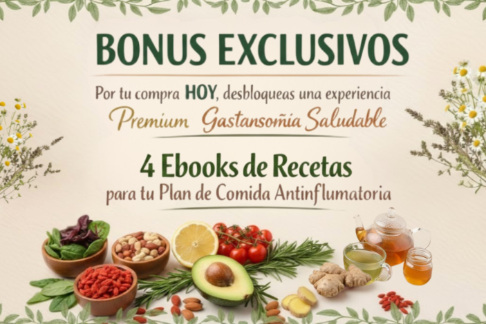 Descubre el poder de la alimentación consciente con nuestra colección completa de Recetas Antiinflamatorias™. Más de 800 recetas, guías prácticas y planes nutricionales para reducir la inflamación y recuperar tu energía en cada comida.