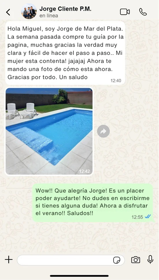 TREMENDO EL CAMBIO Les comparto mi antes y despues! Mi mujer esta muy contenta! ya no depende de mi para que le pase el limpiafondo todos los días porque con esta tecnica lo puede hacer ella sin problemas! GRACIAS INFINITAS